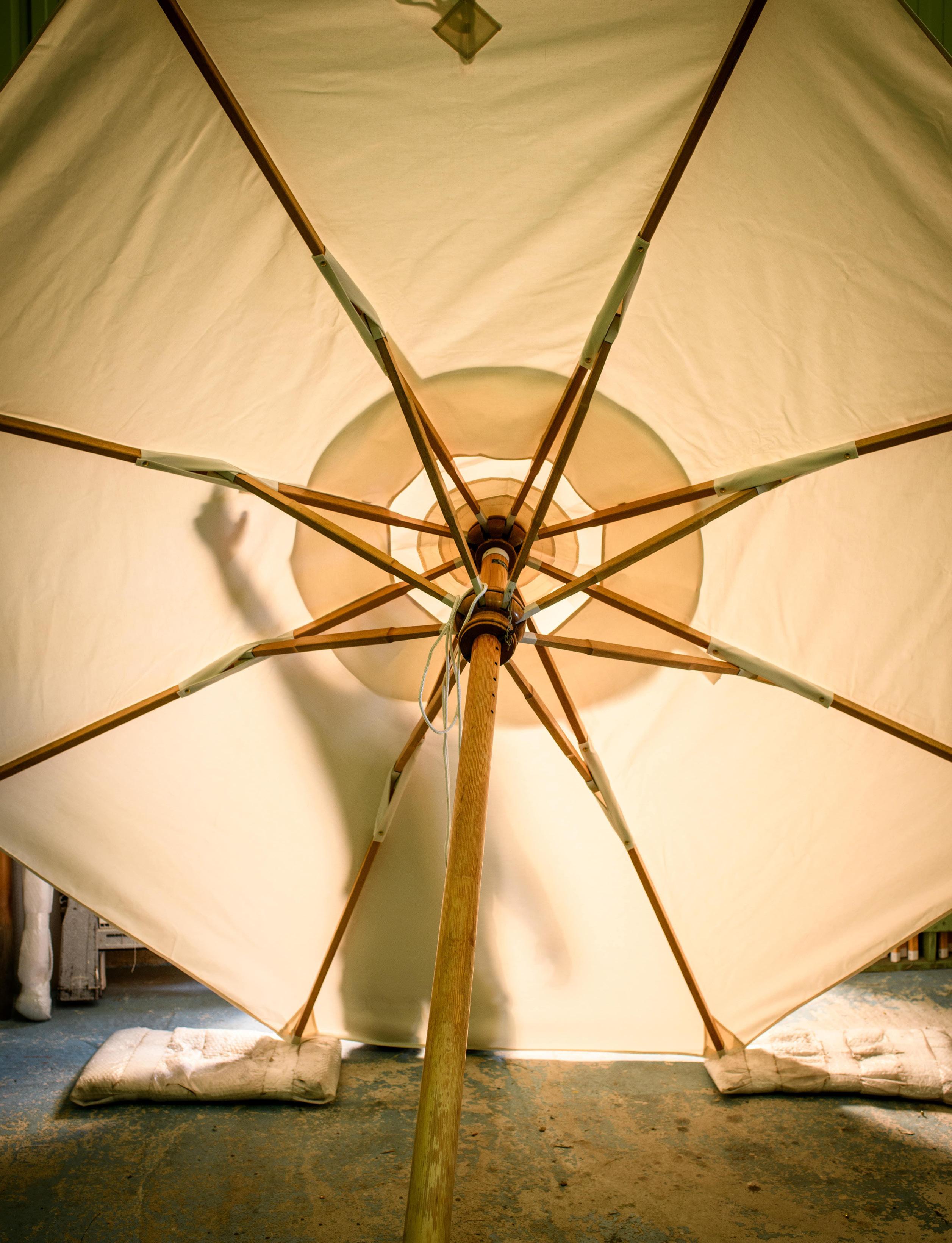 Conviene recordar que se debe cerrar su sombrilla después de su utilización para evitar la desagradable sorpresa que un golpe de viento puede dar, o bien aquella de una paloma que se toma el malvado placer de ensuciar su bella tela. Además es aconsejable recubrirla en invierto con su funda protectora, siempre cuidando de antemano que la tela esté bien seca para que no sufra del moho. Todo esto es evidente. Y a pesar de estas precauciones, la sombrilla sigue siendo una pieza delicada. Reparar sus varillas o cambiar la tela son servicios excepcionales que el Taller Tectona es el único que puede proveer. «Recibimos sombrillas viejos de más de 40 años�, remarca Xavier Legendre. El principio siempre es el mismo: desmontaje, limpieza, verificación de las varillas e instalación de un tenido nuevo. El cambio de tela también es una oportunidad soñada para ofrecer un nuevo color a su sombrilla. Para su elección, le presentamos doce colores lisos que se pueden combinar con un igualmente colorido ribete. «Si así lo desean, nuestros clientes pueden aventurarse ellos mismos a cambiar la tela de su sombrilla con la ayuda de un tutorial disponible on line. Pero se debe entender que el trabajo es complejo y minucioso. Requiere estar bien equipado de herramientas y tener algunas horas a su disposición�.