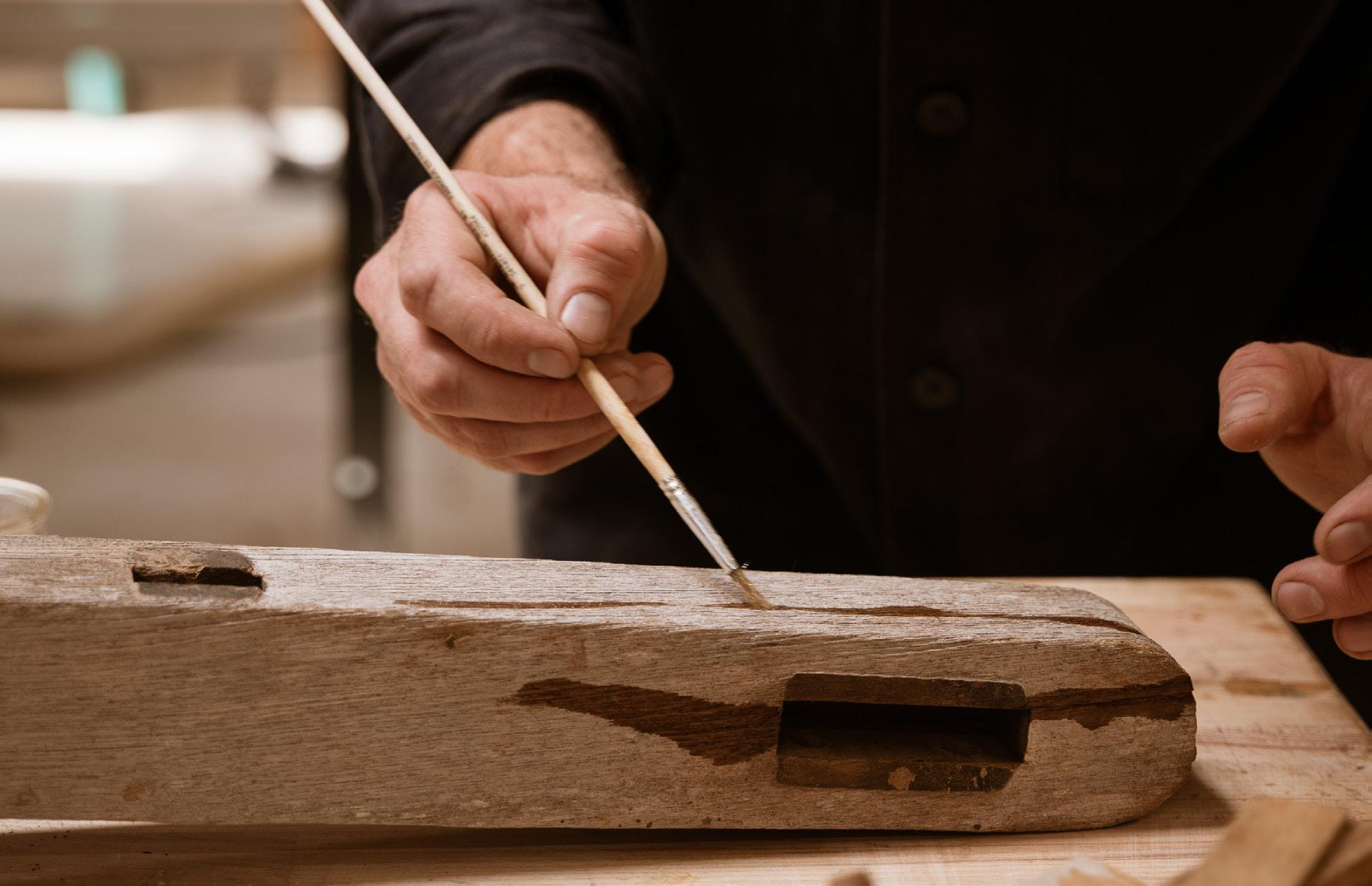 Su intervención es digna de un lifting. Comienza por desmontar el mueble, luego remueve los rastros de pegamento y limpia los ensamblajes. Después, reproduce de forma idéntica la pieza a remplazar y la vuelve a encajar, eventualmente con la ayuda de una clavija. «Como un buen y viejo armario normando�, remarca. No le queda más que lijar, pulir y limpiar la madera. ¿El color no es exactamente el mismo? No se preocupe. En dos o tres meses, la teca se habrá recubierto de la pátina gris que la caracteriza.