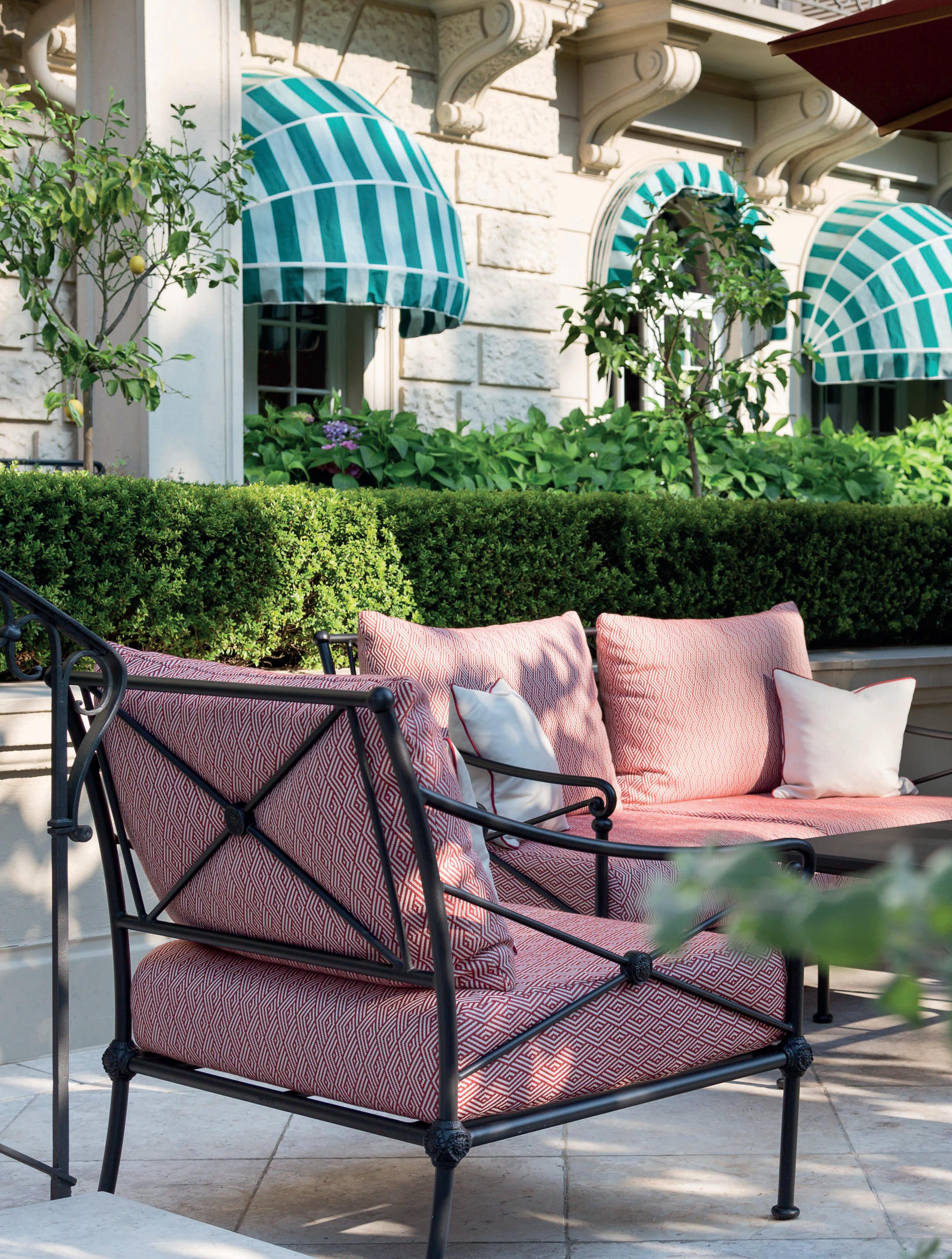 Néoclassique, son design s’accorde idéalement à l’imaginaire offert par la palette infinie de nos tissus outdoor. Pastels, fleuris, exotiques, art déco, géométriques, japonisants, ethniques, tendances… couleurs et motifs se déclinent selon vos souhaits, des plus sages aux plus fantaisistes !
