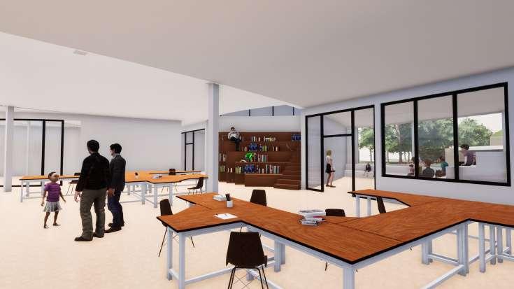 1. AuÊcentre,Êl’école :ÊunÊespaceÊcentralÊouvertÊfavorisantÊlesÊéchangesÊetÊentouréÊdeÊclassesÊetÊd’espacesÊspécialisés.