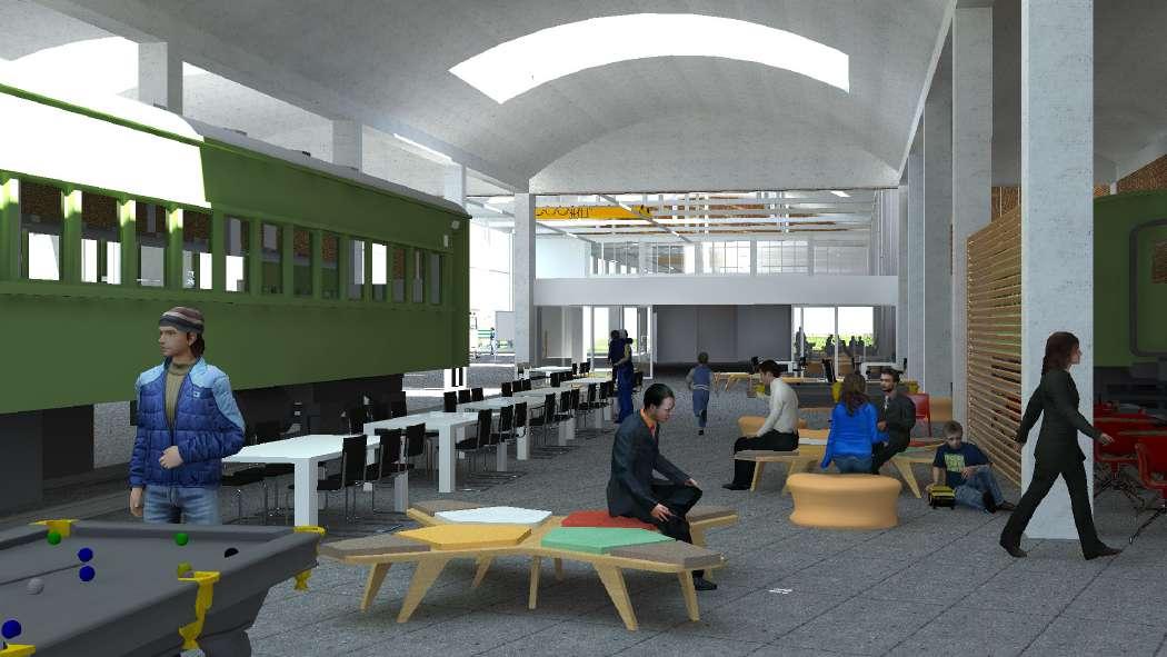 · LeÊgrandÊhangarÊestÊréhabilitéÊenÊunÊespaceÊmul fonc onnelÊrespectantÊsonÊarchitectureÊindustrielle.