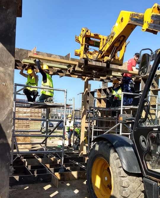 LocauxÊ21—LaÊLouvièreÊ(BE) CeÊworkshopÊportaitÊsurÊlaÊconstruc onÊdeÊdeuxÊarchesÊautoportantes,Êen èrementÊréaliséesÊàÊpar rÊdeÊmatériauxÊdeÊrécupéra on.ÊL’accentÊétaitÊmisÊsurÊlaÊphaseÊchan er,ÊnousÊperme antÊdeÊpasserÊdirectementÊdeÊlaÊconcep onÊàÊlaÊmiseÊenÊœuvre.Ê