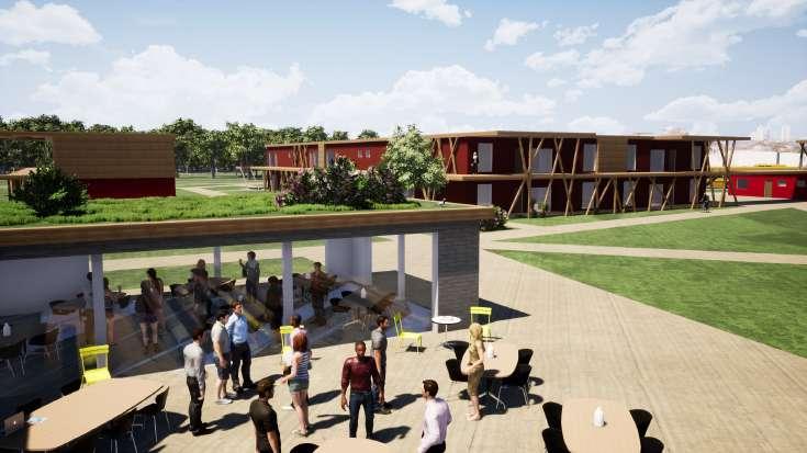 LesÊimmeubles,ÊenÊstructureÊpoteaux-poutresÊbois,ÊévoquentÊdesÊcabanesÊÊÊÊÊÊÊÊÊÊÊÊÊÊÊÊÊÊÊÊÊÊÊÊÊÊÊÊÊÊÊÊÊÊÊÊÊÊÊÊÊÊÊÊÊÊÊÊÊÊÊÊÊÊ dansÊlesÊarbresÊ: