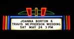 The TCA stage can be decorated to fit your style. The theater seats 500 guests. Guests can enjoy wine before the ceremony in the lobby. They'll also put your name on the marquee!