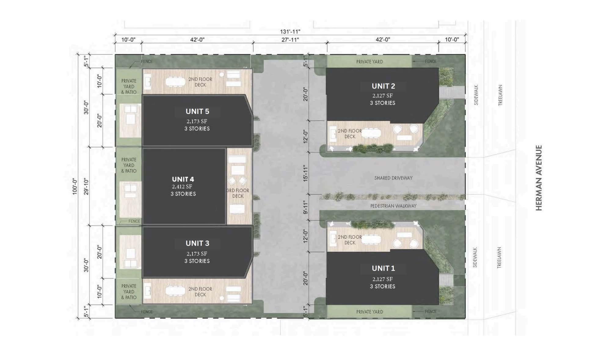 • All residences feature additional outdoor space on the ground level.