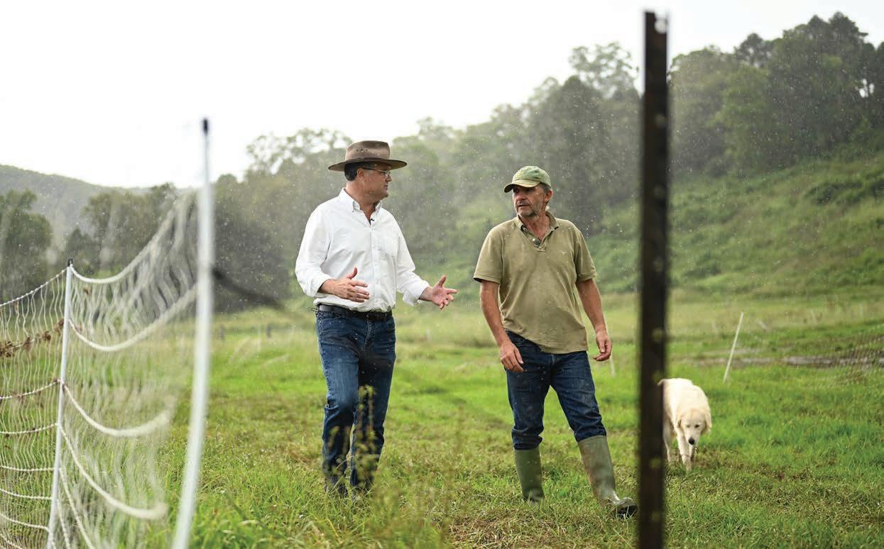 Ted met with residents affected by the February floods, including Gordon McWilliam, Kenilworth Free Range Farm