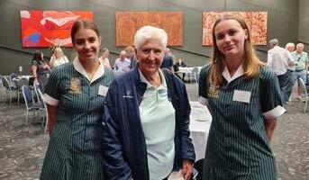 Dawn Fraser and students at a Sunshine Coast 2032 taskforce planning event, attended by local businesses, sporting clubs, and individuals.