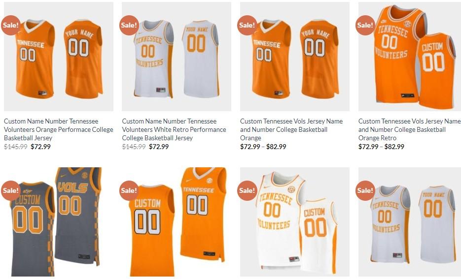 Different types of custom Tennessee jerseys available (football, baseball, etc.)