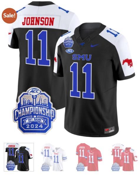 LJ Johnson Jr Jersey #11 SMU Mustangs 2024 ACC Championship Patch V2 Stitched Football