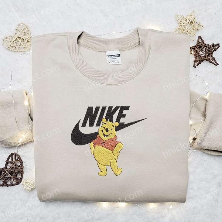 Winnie the Pooh x Nike Cartoon Embroidered Sweatshirt: Disney Characters Shirt for B Gift for Men Women Family Gift Ideas