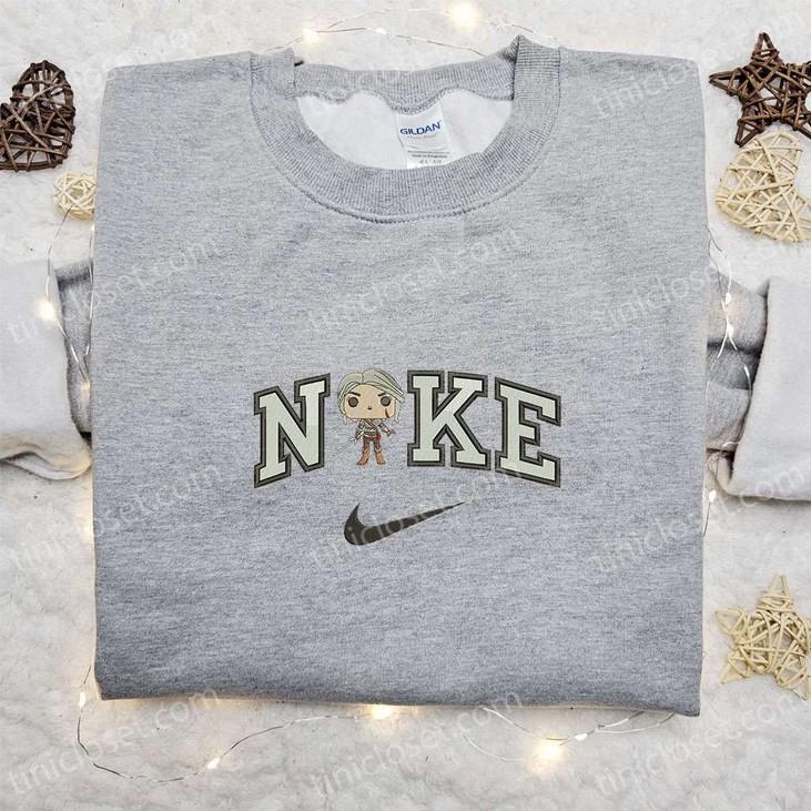 The Witcher Chibi x Nike Swoosh Embroidered Shirt is a musthave for all gaming enthusiasts and fashion-forward individuals. This unique collaboration between The Witcher and Nike brings together the iconic Swoosh logo with adorable Chibi characters from the game. Made with premium quality materials, this shirt offers superior comfort and durability. The intricate embroidery adds a touch of sophistication, making it suitable for both casual and semi-formal occasions. With its trendy design and impeccable craftsmanship, this shirt is sure to turn heads wherever you go. Show off your love for gaming and style with this one-of-a-kind shirt. Perfect as a gift for family or friends, it combines their passion for gaming with their love for fashionable clothing. Don't miss out on this limited edition piece that adds a touch of magic to your wardrobe!