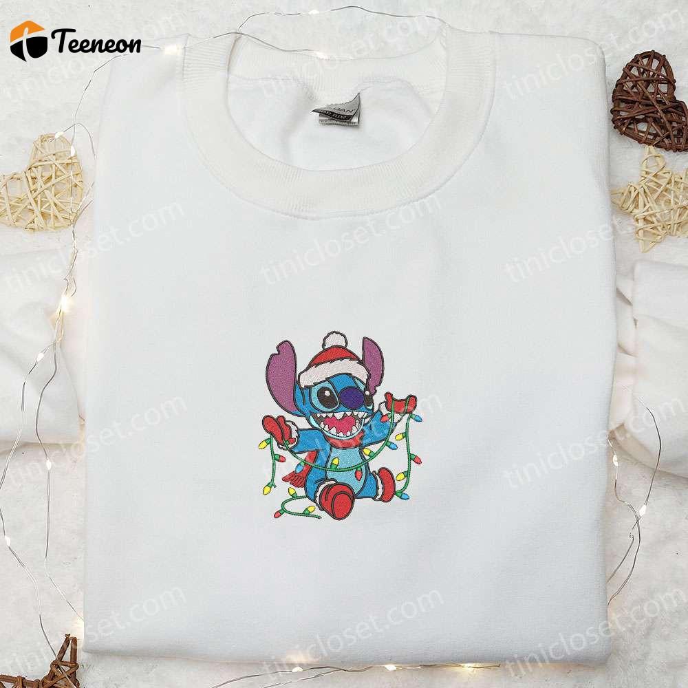 Christmas Embroidered Shirt & Hoodie: Stitch with Disney Characters & F Gift for Men Women Lights
