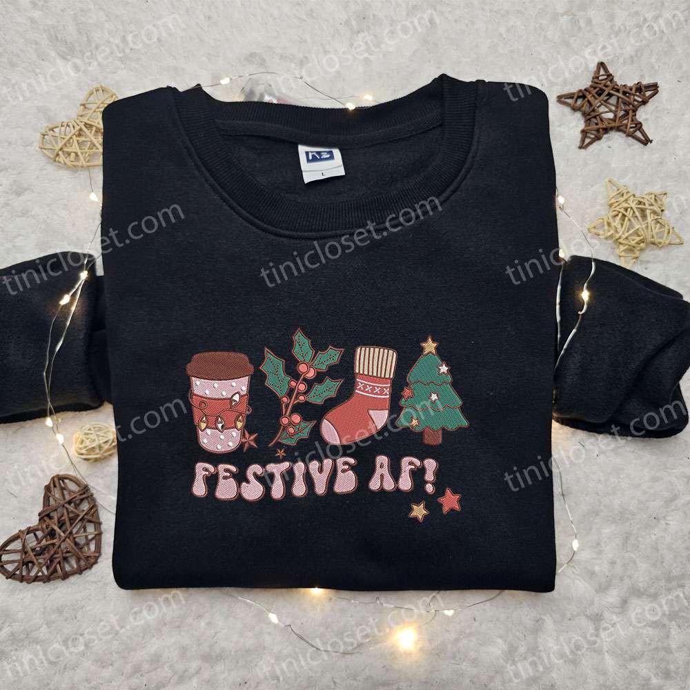 The Festive AF Embroidered Sweatshirt is the perfect way to spread holiday cheer! Made with high-quality materials, this sweatshirt features intricate Christmas-themed embroidery, adding a touch of festive spirit to your wardrobe. Its cozy and comfortable design ensures warmth during chilly winter days. Whether you're attending a holiday party or relaxing at home, this sweatshirt will keep you stylishly cozy. It also makes for the best Christmas gift idea for family, showcasing your thoughtfulness and love. With its unique design and excellent craftsmanship, this sweatshirt offers great value to customers who want to embrace the holiday season in style. Get ready to rock the festivities with this must-have piece!