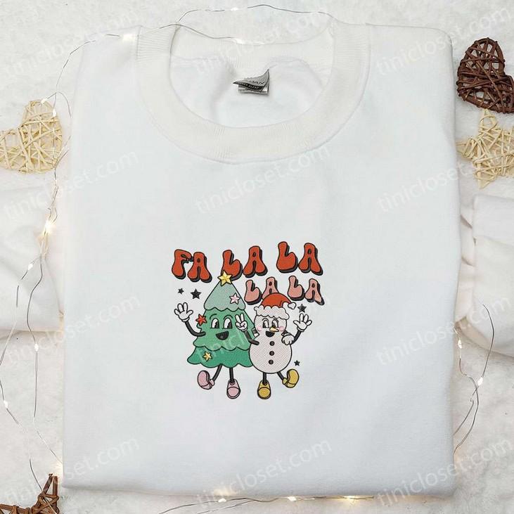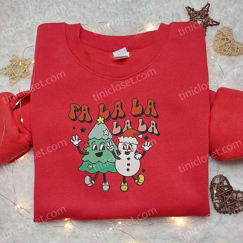 Fa La La La Christmas Tree Snowman Embroidered Sweatshirt - Cute & B Gift for Men Women Gift Idea for Friends