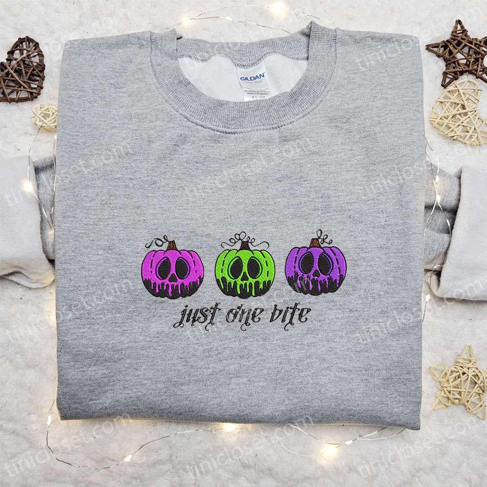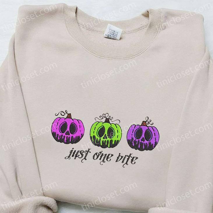 Introducing our Just One Bite Pumpkins Embroidered Sweatshirt! Get ready to embrace the spooky season with this hauntingly stylish and comfortable sweatshirt. Featuring intricately embroidered pumpkins, this sweatshirt is the perfect blend of Halloween spirit and fashion-forward style. Made from highquality materials, it offers a cozy and soft feel, ensuring maximum comfort during chilly autumn evenings. Whether you're attending a Halloween party or enjoying a cozy night in, this sweatshirt is guaranteed to turn heads and add a touch of festive charm to any outfit. Gift yourself or your loved ones this Halloween Embroidered Hoodie, and watch as they light up with joy! It's not just a sweatshirt; it's an expression of your love for all things Halloween. With its unique design, superior quality, and exceptional comfort, this hoodie is the Best Halloween Gift Idea that will make you the envy of every trick-or-treater. Don't miss out on the opportunity to own this one-of-a-kind piece and elevate your Halloween wardrobe to a whole new level. Join the Halloween festivities and grab your Just One Bite Pumpkins Embroidered Sweatshirt today!