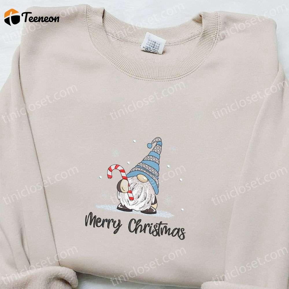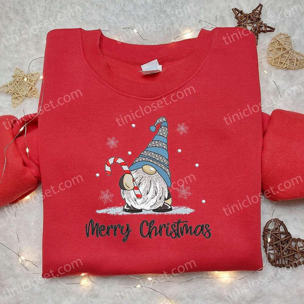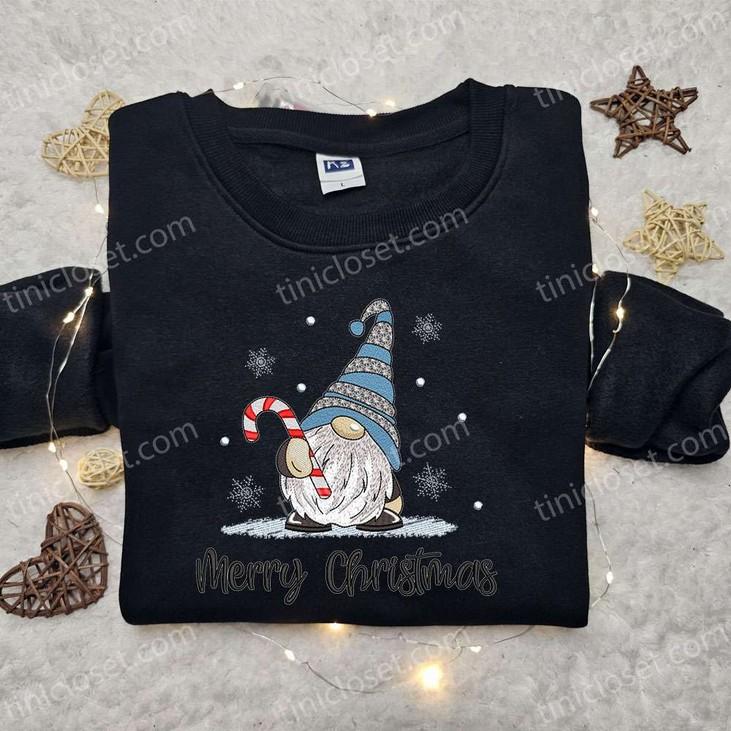 Introducing our festive Merry Christmas Gnome Candy Cane Embroidered Shirt, the perfect addition to your holiday wardrobe! Crafted with utmost care, this shirt features a charming gnome and candy cane embroidery, adding a touch of whimsy to your Christmas celebrations.