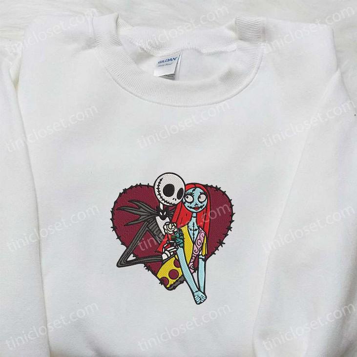 Introducing our Jack and Sally Heart Embroidered Sweatshirt, the perfect way to show your love this Valentine's Day! This shirt features a beautifully crafted heart design, embroidered with intricate details of Jack and Sally from the beloved movie. Made with high-quality materials, this sweatshirt is not only stylish but also comfortable and cozy, keeping you warm during those chilly winter months. It's the ideal gift for any Tim Burton fan or someone special in your life. With its unique design and sentimental value, this sweatshirt is sure to make a lasting impression and bring a smile to your loved one's face. Don't miss out on this opportunity to give the best Christmas gift everorder your Jack and Sally Heart Embroidered Sweatshirt today!