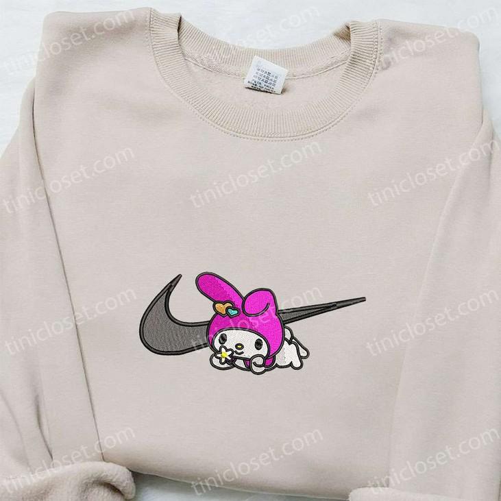 Introducing the My Melody x Nike Swoosh Embroidered Shirt, a perfect blend of cuteness and style! This limited edition collaboration brings together the beloved Sanrio character, My Melody, with the iconic Nike Swoosh logo. Made from premium quality cotton, this shirt ensures comfort and durability. The meticulously crafted embroidery adds a touch of charm and uniqueness to your everyday look. With its versatile design, this shirt can be effortlessly paired with any bottoms for a casual yet fashionable outfit. Embrace the magic of this exclusive collaboration and make a bold fashion statement!