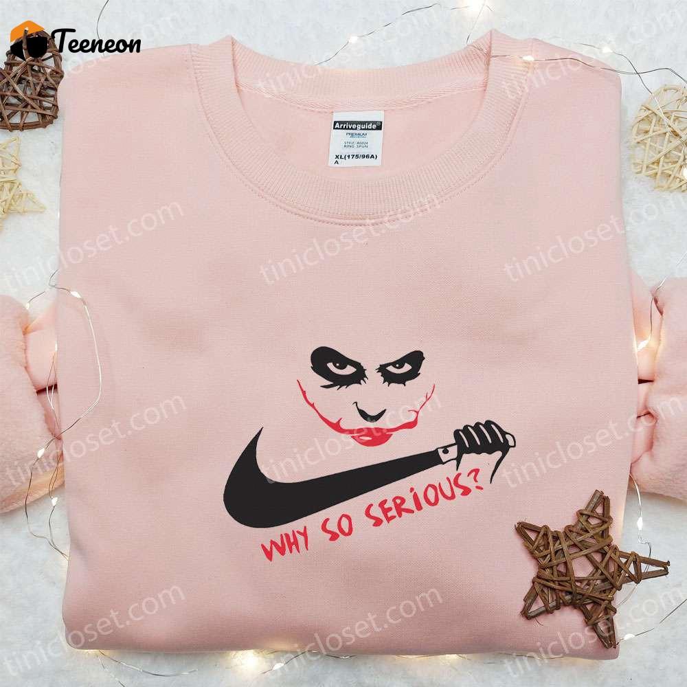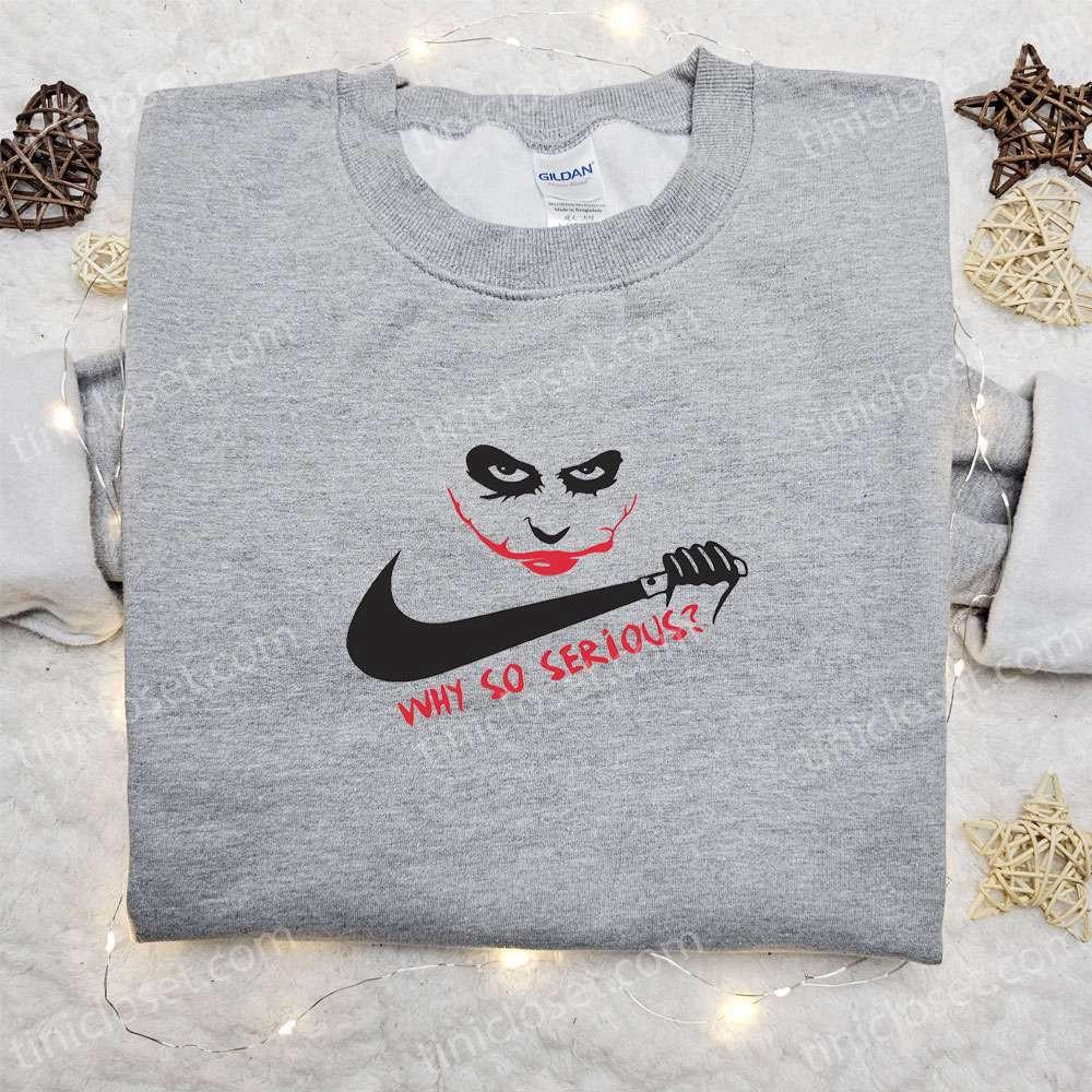 Elevate your style and embrace the dark side with our Joker Why So Serious x Swoosh Movie Embroidered Hoodie. This hoodie is a tribute to the iconic Joker character, featuring intricate embroidery of the infamous phrase "Why So Serious" alongside the Swoosh logo. Crafted from premium quality materials, it offers both comfort and durability. With its cozy hood and spacious pockets, this hoodie is perfect for chilly evenings or casual outings. Stand out from the crowd and channel your inner Joker with this unique and stylish hoodie.