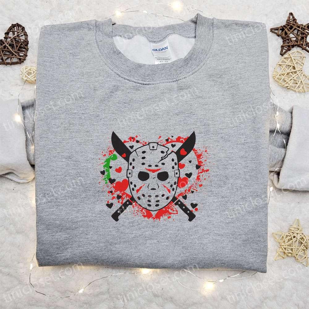 By owning the Jason Voorhees You Slay My Heart Embroidered Sweatshirt, you not only get a high-quality and visually stunning piece of clothing, but you also become a part of a community of horror movie enthusiasts who appreciate the artistry and thrills that these films bring.