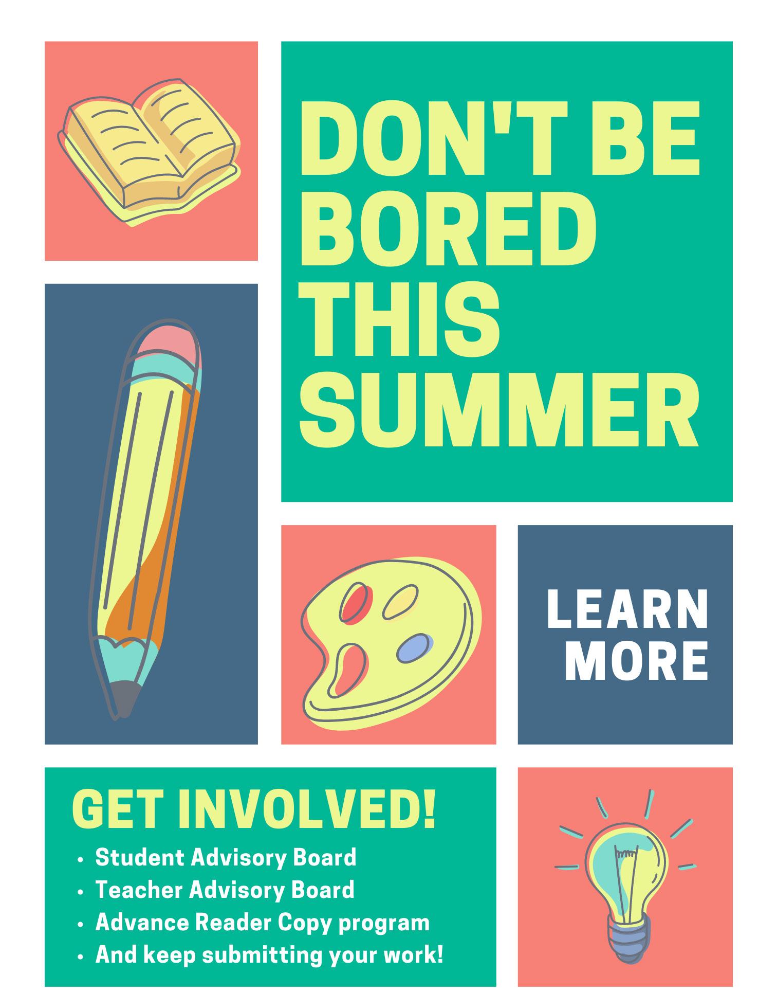 You’ve spoken, and we’ve listened. We included two exciting featured sections in this issue: Pride Month and Current Events. We celebrate all walks of life and opinions at Teen Ink, so showcasing these points of view are of utmost importance to us. Expect to see more current events sections going forward in the magazines, and make sure to submit your takes on newsworthy events to our website!
