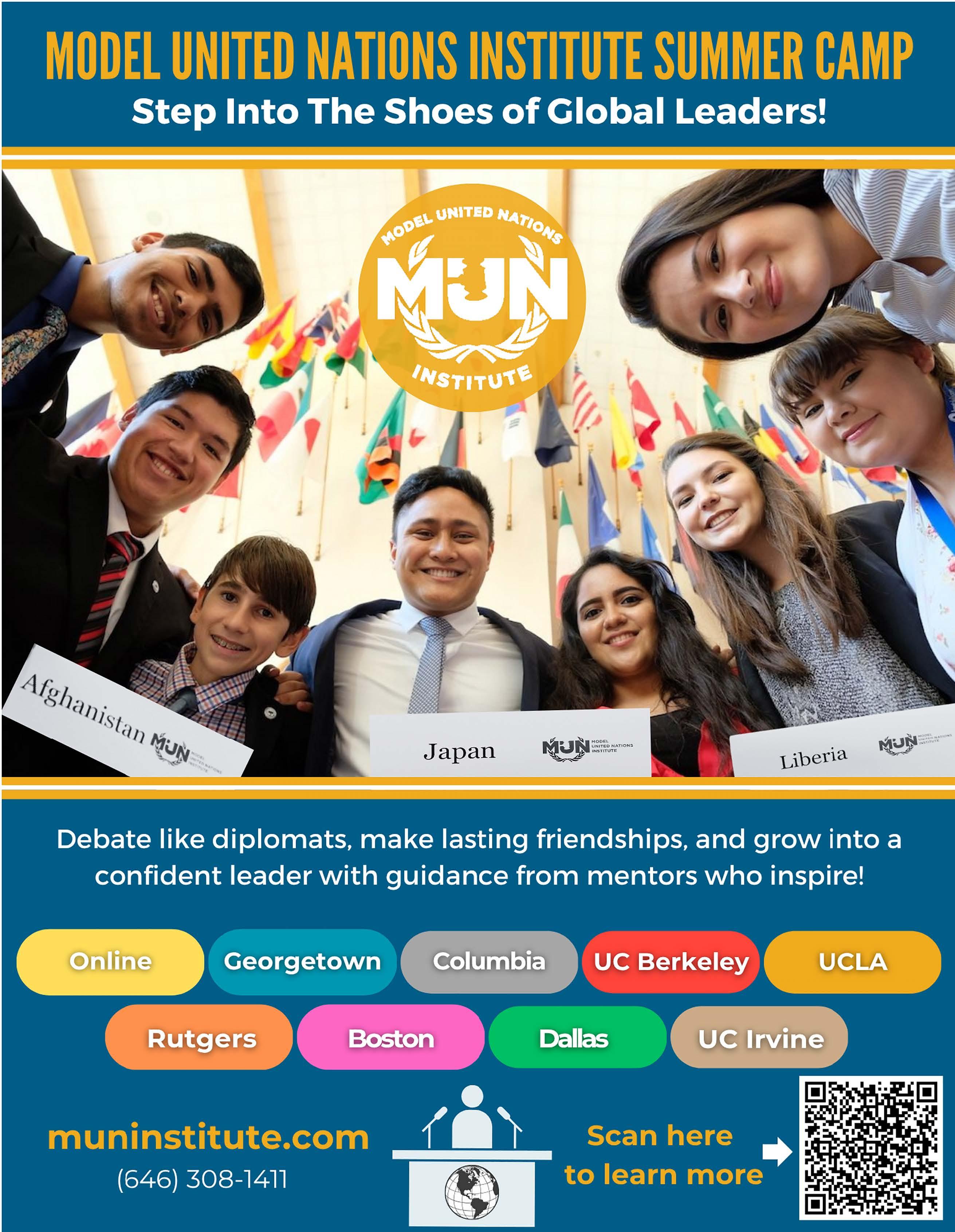 Step into the shoes of global leaders, tackle pressing issues, enhance your public speaking and debate skills, get daily feedback from champion mentors, and make friends who care about the world! Experience Model United Nations simulations, public speaking labs, trivia, games, social events, and explore your dream campus. Camp is a vibrant atmosphere with flags, maps, and positive energy. Leave inspired to debate diplomatically in a polarized society, change the world, and do Model UN at your school!