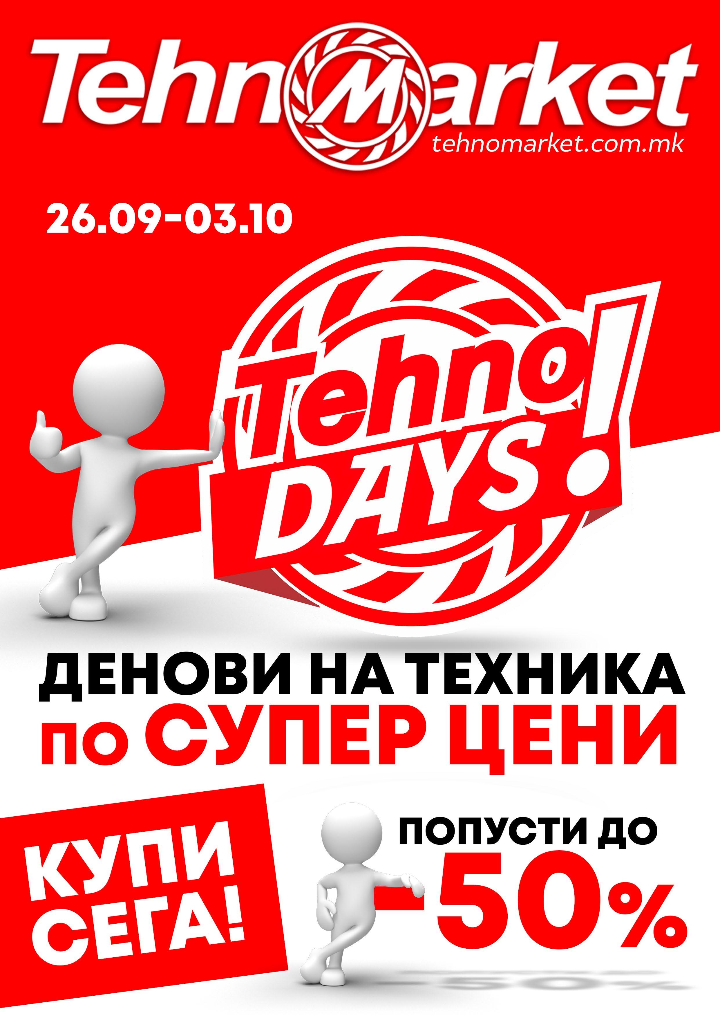 *Техномаркет Македонија ДООЕЛ Скопје не сноси одговорност за евентуални печатни грешки, го задржува правото на промена на цените, условите за купување како и периодот во кој важи акцијата, без претходна најава или јавно известување. Истакнатите фотографии се од ислустративен карактер и се добиени од овластениот производител, доколку производот се разликува од истакнатото Техномаркет не сноси одговорност. SMART ЦЕНА 1.199 РЕДОВНА ЦЕНА 1.499 CV1801F0 ФЕН ЗА КОСА моќност 1600w, 2 брзини на дување ладно дување, 1 додаток насочувач должина на кабел 1,8м TehnoDAYS! 26.09