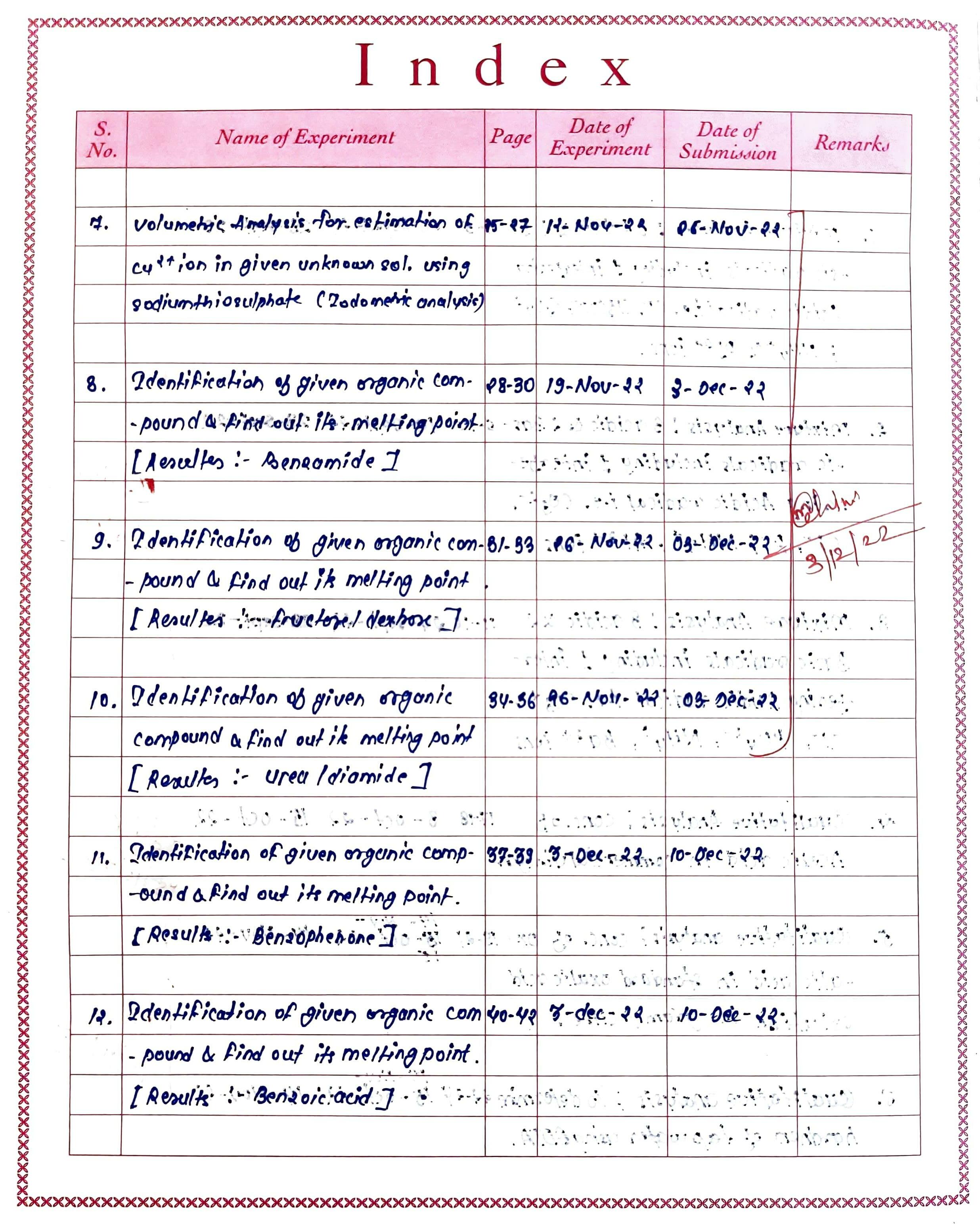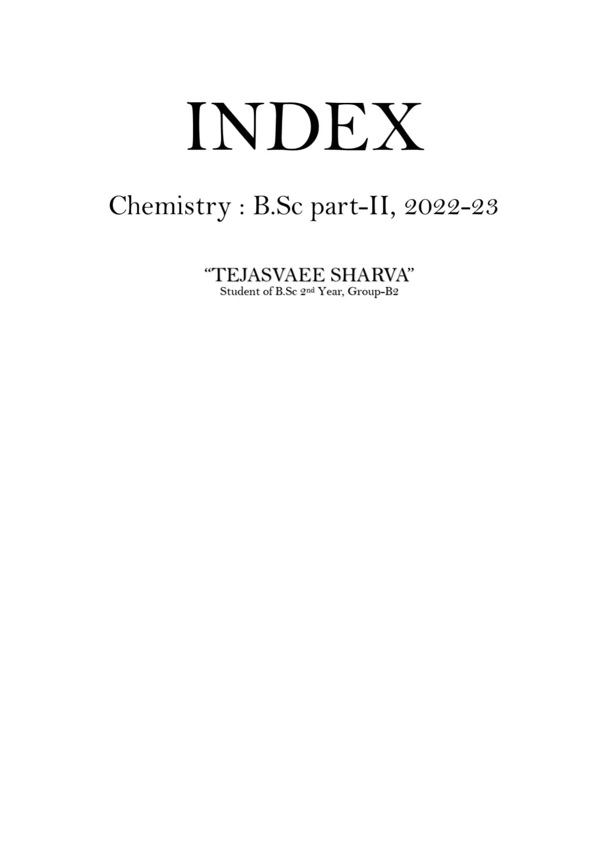 INDEX Chemistry : B.Sc part-II, 2022-23