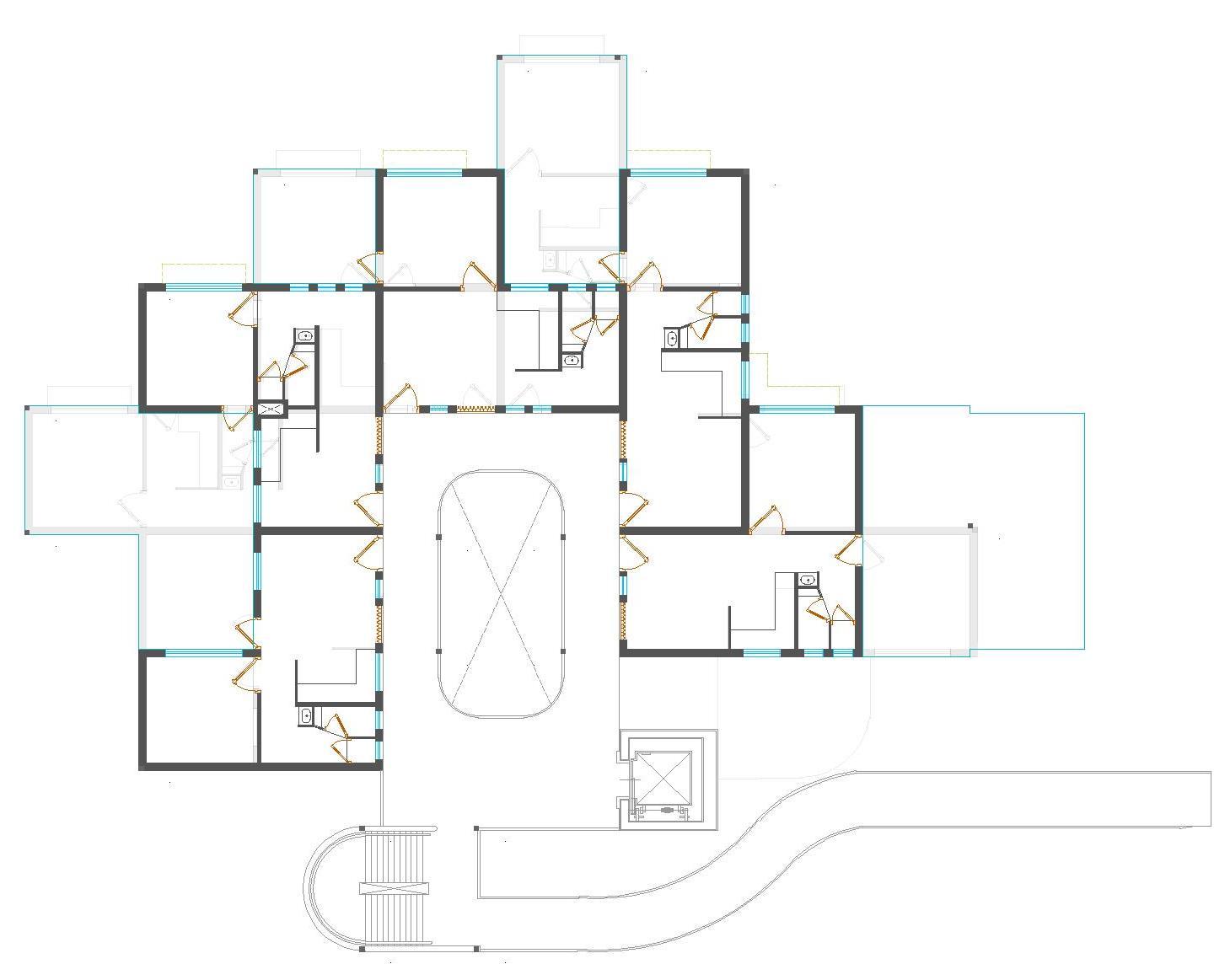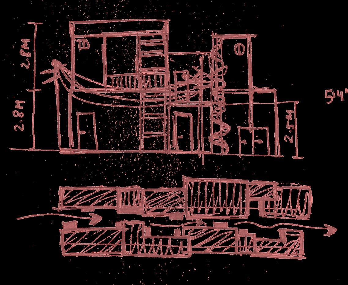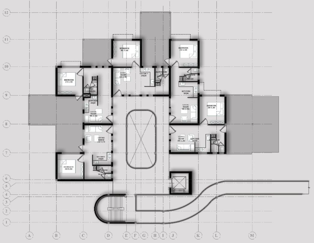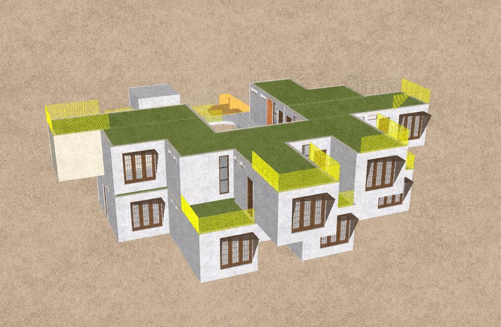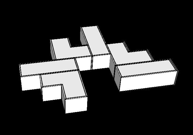 DESIGN FEATURES TWO DISTINCT FLOOR PLAN MODULES, CREATING DYNAMIC AND VARIED LIVING SPACES. THE GROUND FLOOR MODULE CONTAINS FIVE UNITS, WHILE THE FIRST-FLOOR MODULE HAS SIX,ALTERNATING VERTICALLYTHROUGHOUT THE BUILDING. THIS REPETITION ESTABLISHESARHYTHMIC AESTHETIC, WITH VARYING UNIT COUNTSADDING COMPLEXITY. EACH UNIT INCLUDESAMULTIFUNCTIONAL SPACE,AND ALL UNITS WITHIN AMODULE CONNECT TOACENTRAL LOBBY, WHICH THEN LINKS TOALL OTHER LOBBIES, FOSTERING COMMUNITY. THIS DESIGN FUNCTIONSAS BOTH ROWAND GROUP HOUSING.