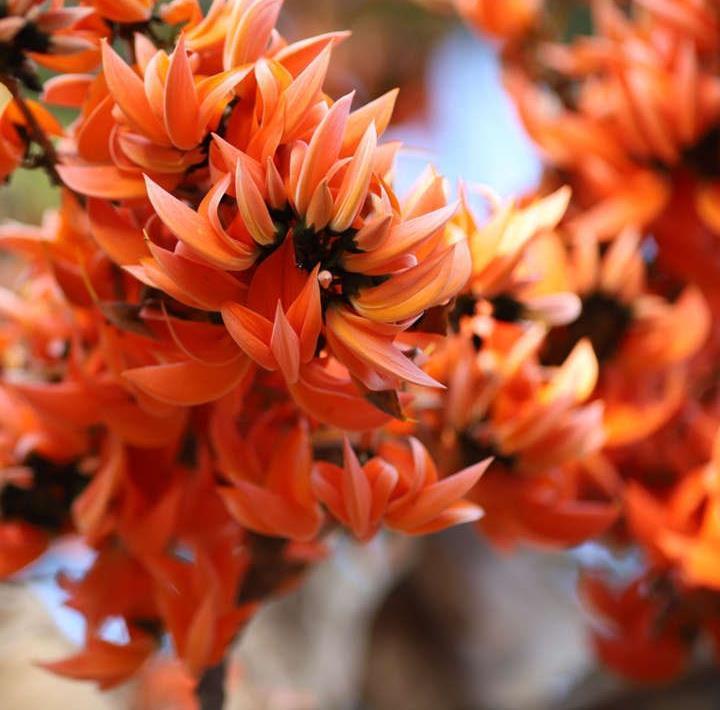 • The Jarul (Lagerstroemia speciosa), or Pride of India, adds delicate yet striking shades of pink, purple, and mauve, its crinkled petals providing a softer elegance. Finally, the • Palash (Butea monosperma), the "Flame of the Forest,"