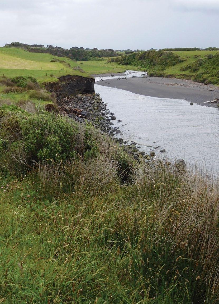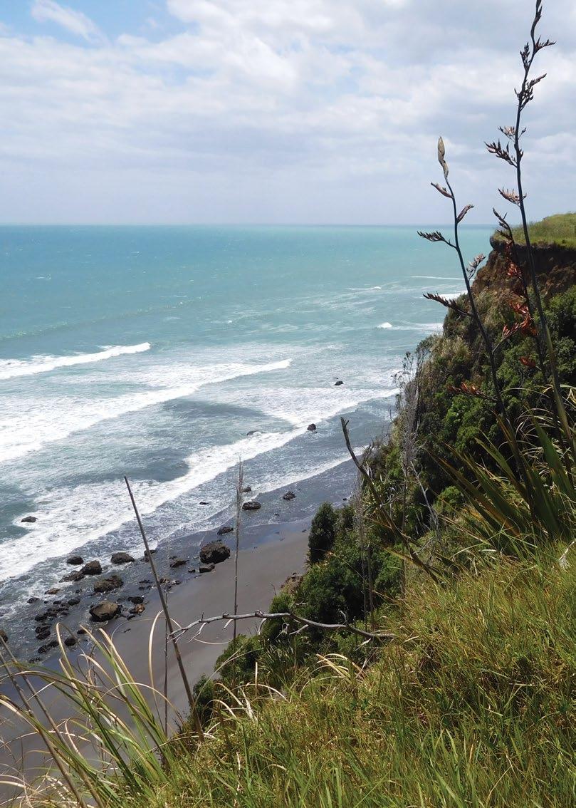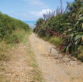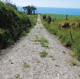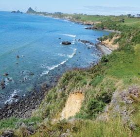 Sutton Road – formed legal road follows farm track directly to the sea, although access here needs to be restricted to pest management work, as cliffs are very steep and eroding – no visitor access recommended. Alternate access is along coast at the base of the cliffs –beware of tide and slips.