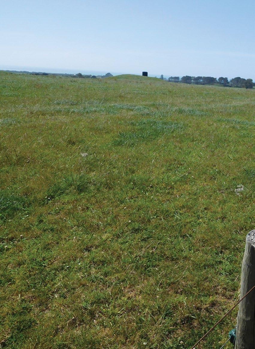 Like many smaller pa of the survey area, Koru occupies a site low on a spur, without any command of the surrounding countryside. Use has been made of a steep sided knoll at the end of a spur which rises to higher ground to the south, ultimately to the Kaitake Ranges. Natural defence consists of steep scarps to the river on both sides of the pa with a steep but greatly modified scarp to a small river flat on the south-east side. The north end of the peninsula falls to the river level and has required some assistance from artificial defences. The Oakura River itself, with its rough bed of large rounded boulders completely commanded from within the pa, adds considerably to the natural defence.