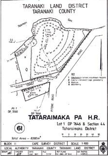 Omata was a Taranaki Iwi village marked on F A Carrington’s 1848 map of the district. Nga Mahanga and Ngati Tairi occupied this village when the sale of Omata Block was transacted on 9th September 1847. It is believed that following the sale of the Omata Block people left Omata kainga and reestablished themselves at Ratapihipihi.