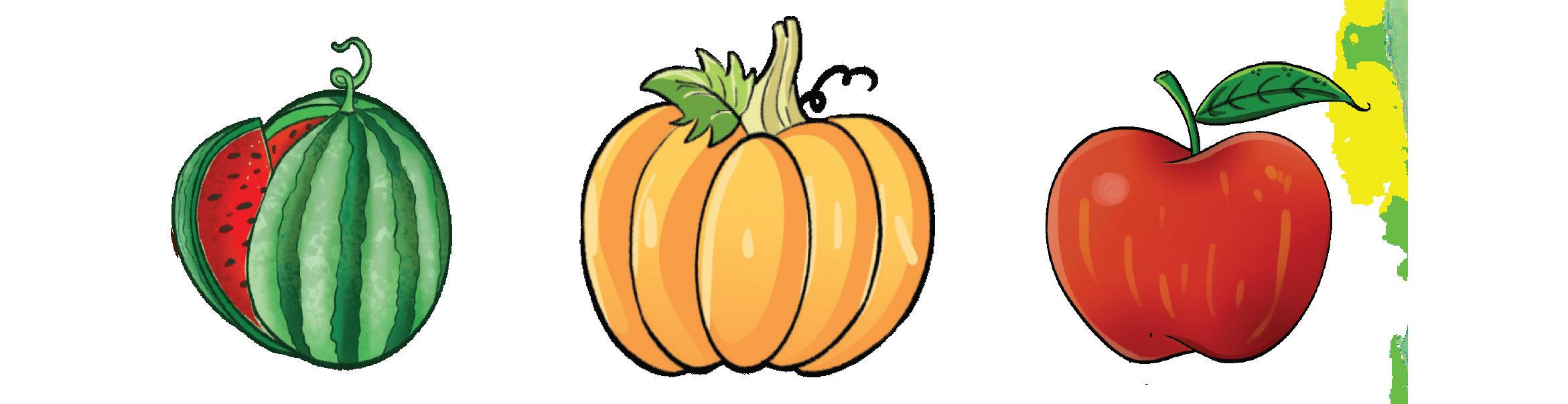 1. Draw lines to match the fruits and vegetables to the correct basket.