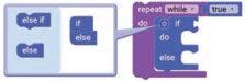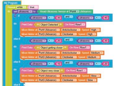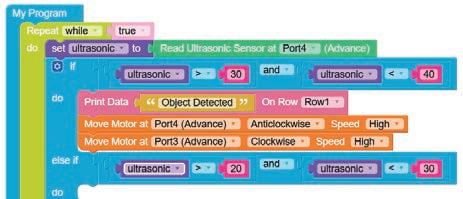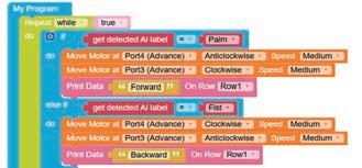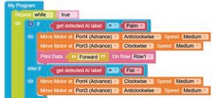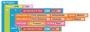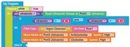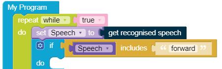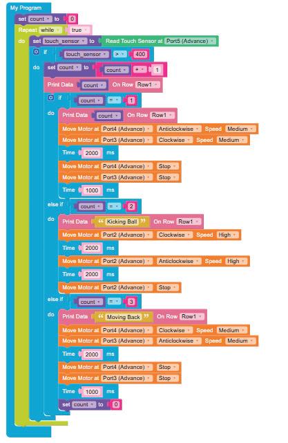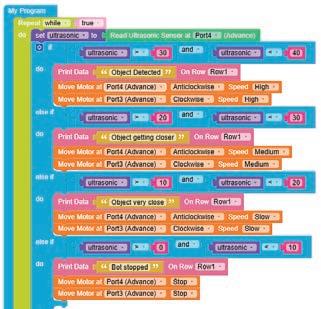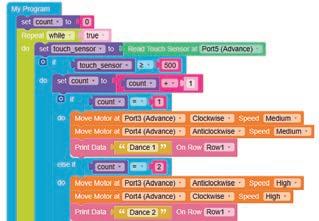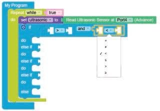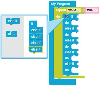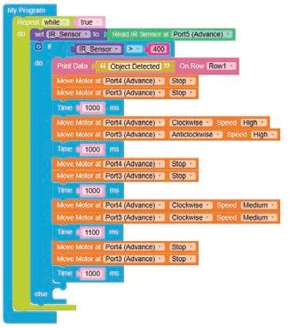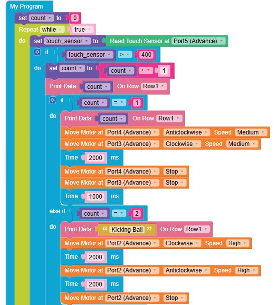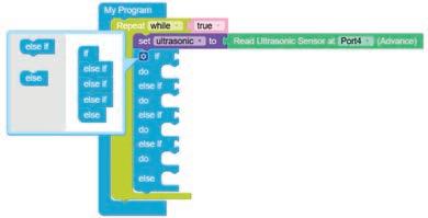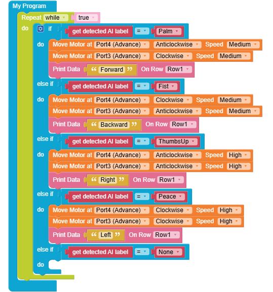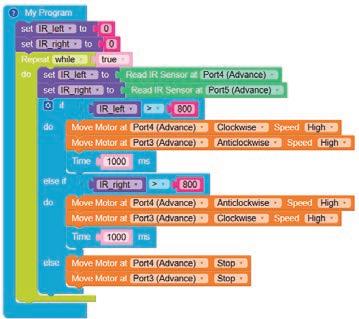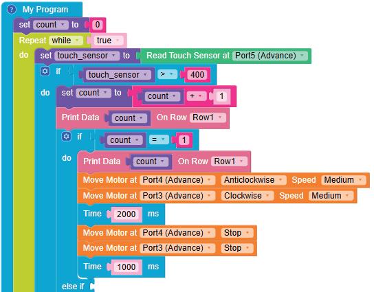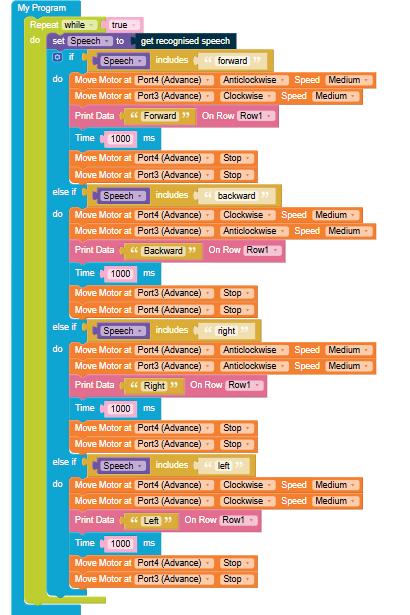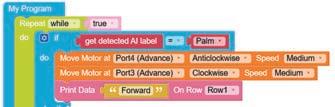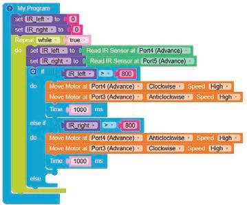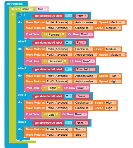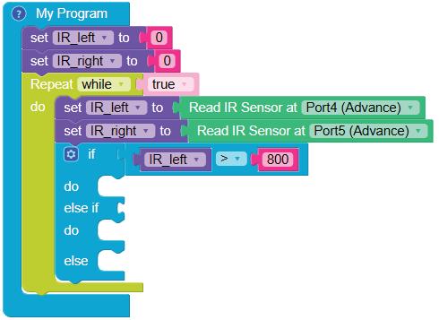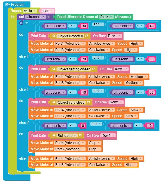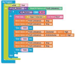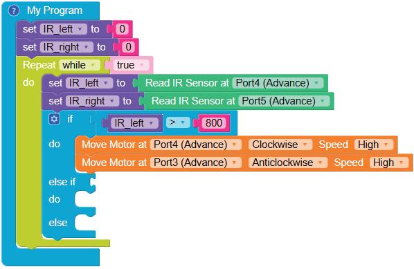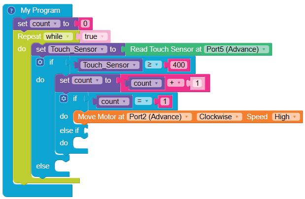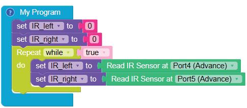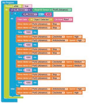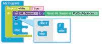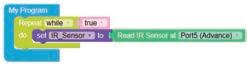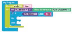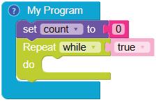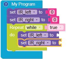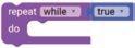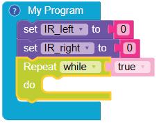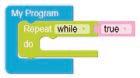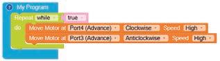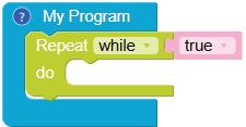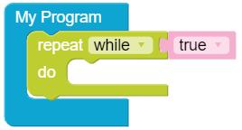 • To move the bot forward for infinite time, use the Repeat while block from the Loops category with the Move Motor at blocks.