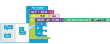 1. Drag the if block from the LOGIC blocks panel and drop it to the workspace.