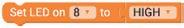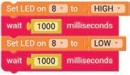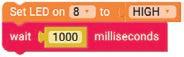 4. Similarly, drag another Set LED on block below the wait milliseconds block. Set its LED pin to ‘8’.