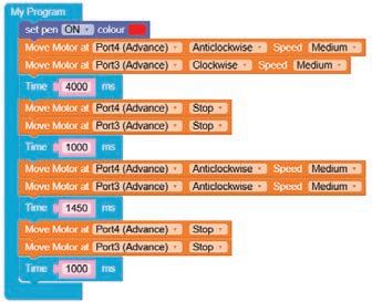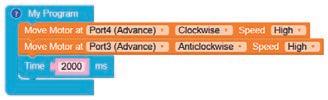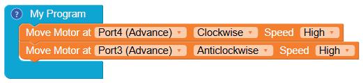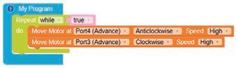 • Similarly, to turn the bot forward, configure the motor at Port4 as Anticlockwise and Port3 as Clockwise by making the respective selections from the drop-down menus.