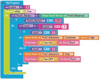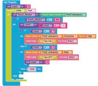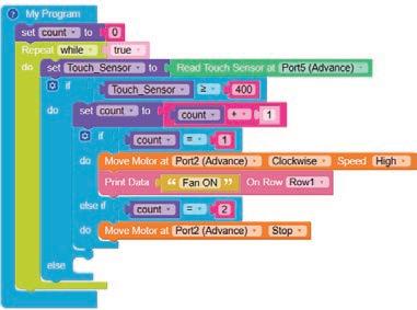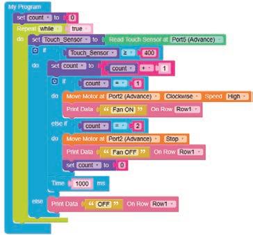 11. When the touch sensor is tapped, it sends a HIGH signal to the brain module and as per the instructions given using the coding blocks, the buzzer produces a sound, indicating that the touch has been detected.