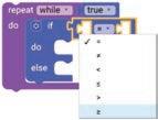 4. Drag the equal operator block from the LOGIC category and attach it to the if block.