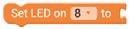 1. Drag the Set LED on block from the LIGHTS category and drop it to the workplace. Set the LED pin to ‘8’.