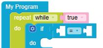 6. Drag the equal operator block from the LOGIC category and attach it to the if block.
