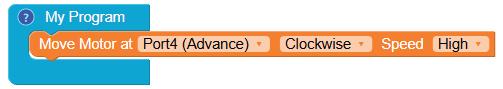 • Drag the Move Motor at block from the Motor category and drop it inside the My Program block.