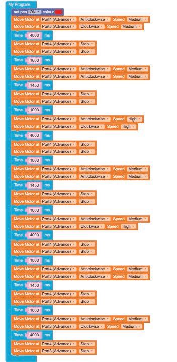 • Similarly, drag another Move Motor at block and drop it below the previous block.