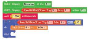 9. Drag the Set LED on block from the LIGHTS category and drop it in the do part of the if block. Set the LED pin to ‘6’ from the drop-down.