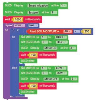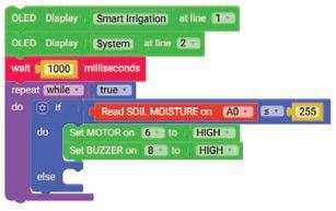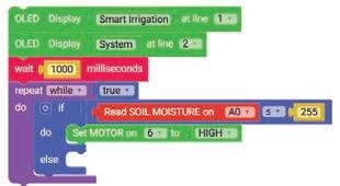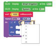 11. Drag the Read SOIL MOISTURE on block from the SENSORS category and drop it to the left of the less than or equal to (≤) block.