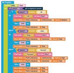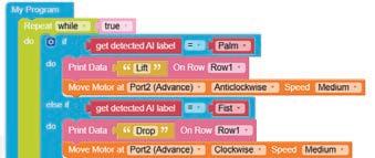 10. Drag the Set SERVO on pin block from the OUTPUT category and drop it in the do part of the if block. Select ‘10’ for the pin from the drop-down and type ‘90’ in the text part of the block for degrees.