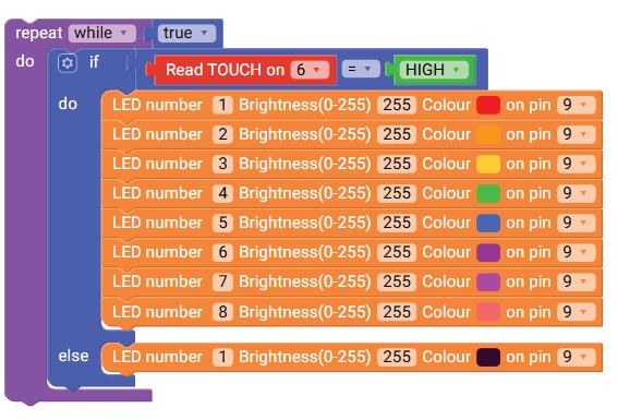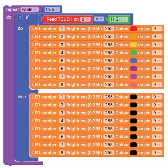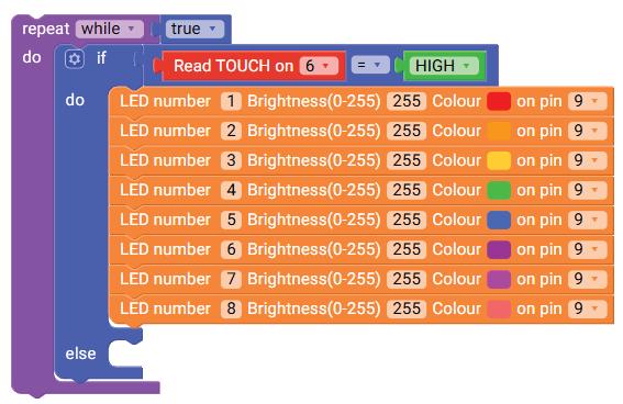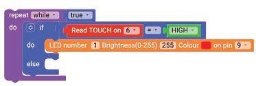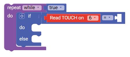20. Similarly, drag the Set MOTOR on block from the OUTPUT category and drop it in the else part of the if block. Select ‘6’ from the drop-down of the block.