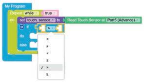 7. Select ‘<’ (less than) operator from the drop-down of the if block.