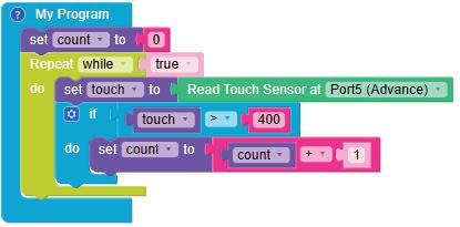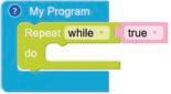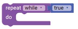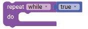 5. Drag the true block from the LOGIC category and attach it to the repeat while block.
